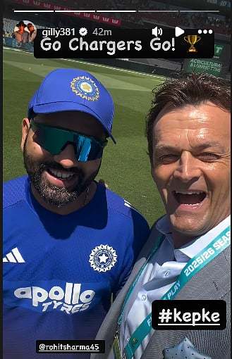 Former Team India skipper Rohit Sharma and former Australia cricketer Adam Gilchrist were seen having a wholesome moment ahead of the 2nd ODI in Adelaide on Thursday, October 23. Both players who played together at the now-defunct Deccan Chargers in the Indian Premier League took a moment for a selfie together. The video fo the same has gone viral on social media.